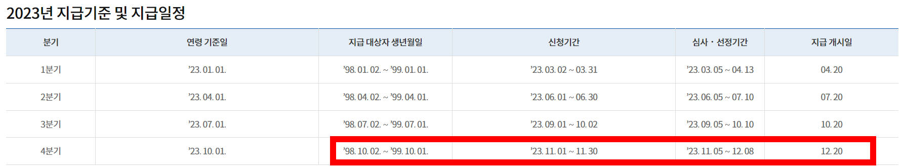 4분기 신청기간: 2023.11.01.(수) 09:00 ~ 2023.12.13.(수) 18:00
