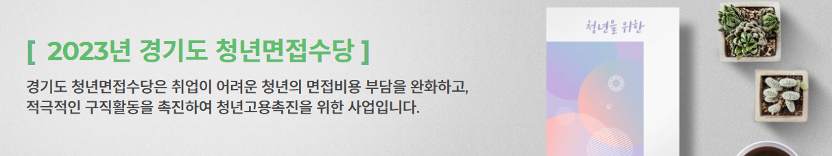 제2023-052호   『2023년 경기도 청년 면접수당』 모집 공고 경기도 청년의 적극적 구직활동을 지원하고자 「경기도 청년 면접수당」 지원 대상자 모집을 아래와 같이 모집 공고합니다.   2023년 5