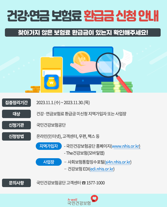 오늘은 건강보험 환급금을 찾는 방법에 대해 소개해 드리려고 합니다. 건강보험 납부 시 실수로 과다하게 납부한 환급금이 있는지 확인해 보셨나요? 만약 그렇다면, 그 돈을 돌려받는 것은 여러분의 권리입니다! 이 글에서는 환급금을 놓치지 않고 신속하게 받아내는 방법과 신청 프로세스를 자세히 안내해 드리겠습니다. 이번 포스팅 읽어보시고 건강보험 납부 시 과다한 보험료를 납부한 경우가 있다면 이 금액을 꼭 조회 해보시고 그 환급금을 신청해 보세요!