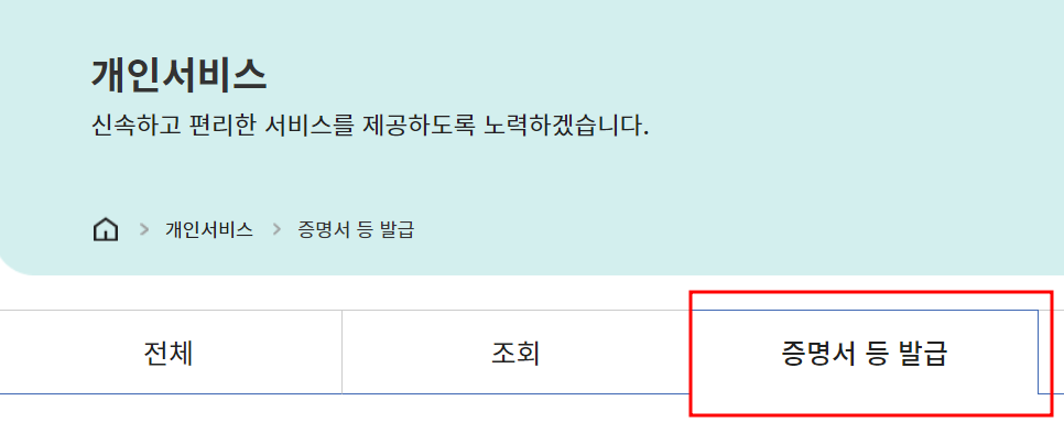 4. 증명서 발급 서비스 클릭
