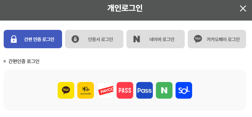 3. 개인인증 절차를 거쳐 개인로그인을 진행합니다.