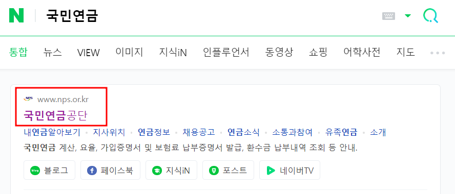 1. 국민연금 홈페이지를 검색 후 접속합니다.