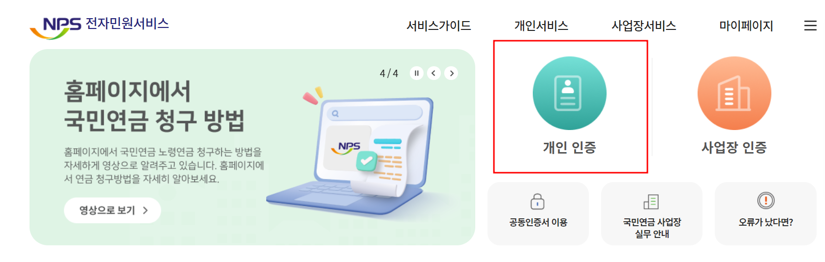 1. 국민연금공단 홈페이지에 접속
