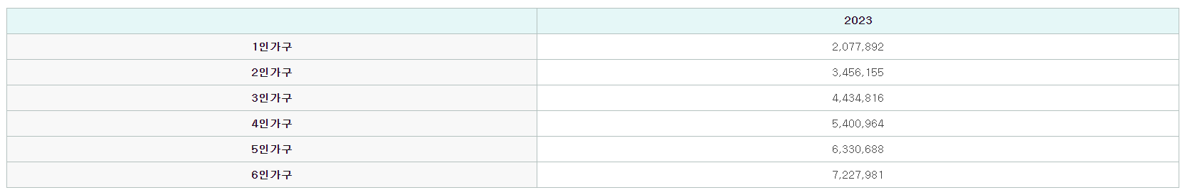 2023년도 기준 중위소득