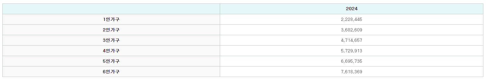 2024년도 기준 중위소득은 아래와 같이 인상됩니다.