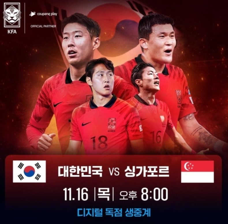 [2026 FIFA 북중미 월드컵 아시아 2차 예선] 대한민국 vs 싱가포르 - 쿠팡 와우회원이라면? 쿠팡플레이에서 보세요!