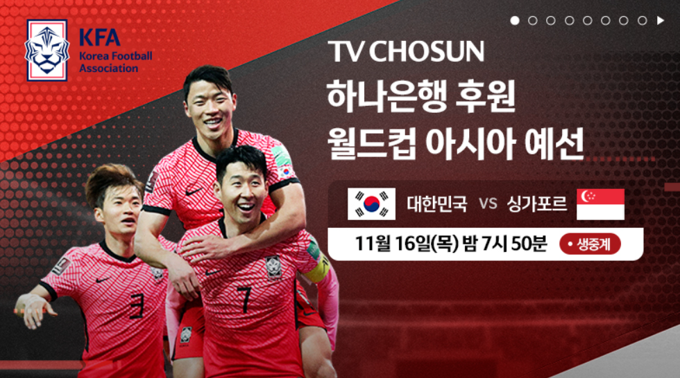 1. 대한민국 VS 싱가포르 방송일시 : 11월 16일(목) 저녁 7시 50분 ~