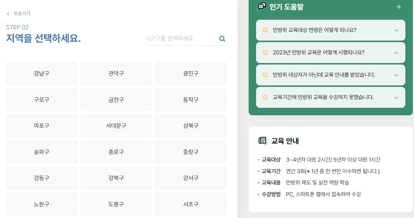 4. 서울을 예시로 보여드리겠습니다. 서울특별시를 선택 후 세부지역을 선택합니다.