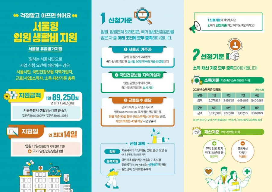 오늘은 서울시에서 제공하는 특별한 혜택 중 하나인 "서울형 입원 생활비 지원 정책"에 대해 알려드릴게요. 이 정책은 질병이나 부상으로 치료가 필요한 노동 약자들에게 큰 손길을 내밀어 주는 프로그램입니다. 서울형 입원생활비 지원(서울형 유급병가 지원) 정책은 질병·부상으로 인해 치료가 필요한 일용근로자, 특고·프리랜서, 1인 소상공인 등 노동 약자를 대상으로 입원 생활비를 지원하는 제도입니다. 이번 포스팅에서 함께 지원대상과 혜택, 신청방법 등에 대해 알아보도록 하겠습니다.