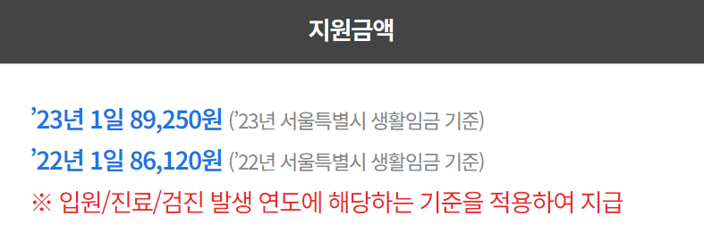 지원금액 : 1일 89,250원(’23년 서울시 생활임금 기준)