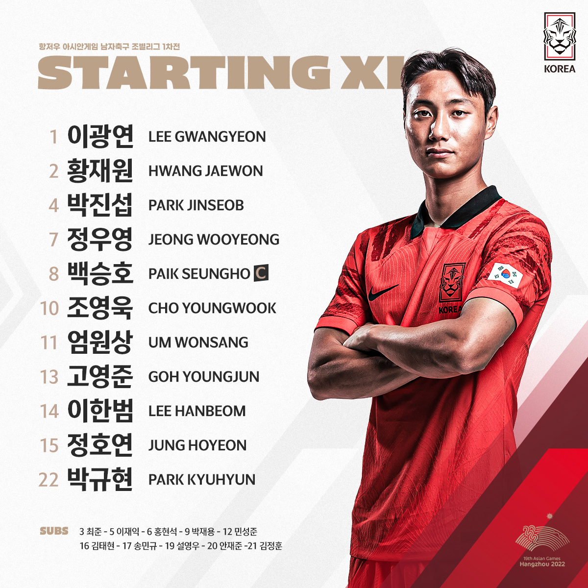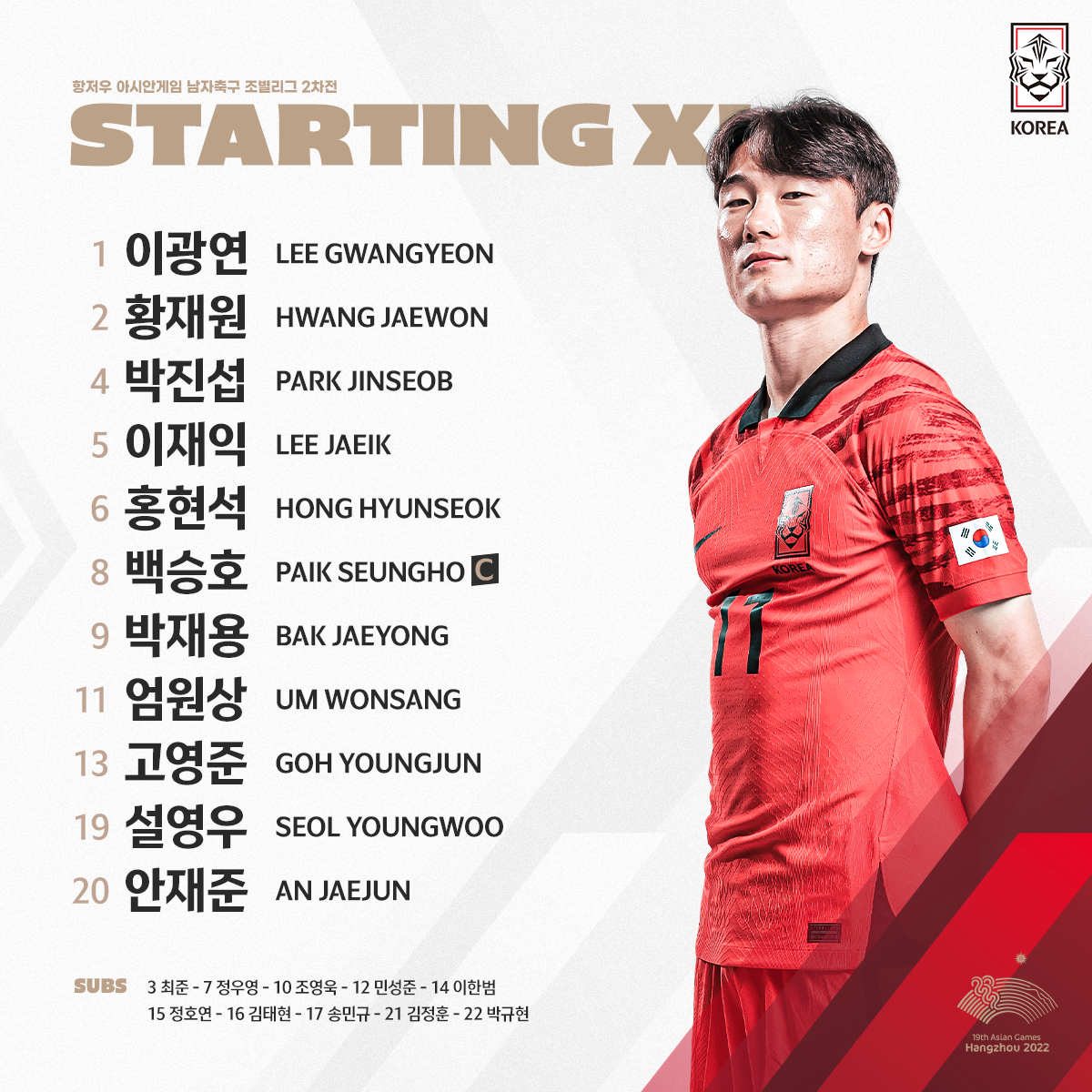 2023 항저우 아시안게임 남자축구국가대표팀 최종명단(총 22명)