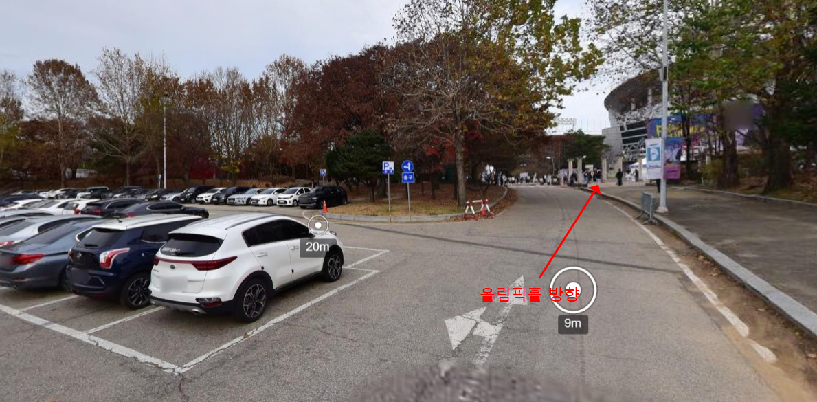 반대로 방금 설명드렸던 화장실과 주차정산기를 오른쪽으로 끼고 쭉 직진하면 올림픽홀이 보입니다. 남2문 주차장은 주차공간이 정말 넓어 주말 공연 시간에도 쉽게 자리를 찾을 수 있는 장점이 있습니다.