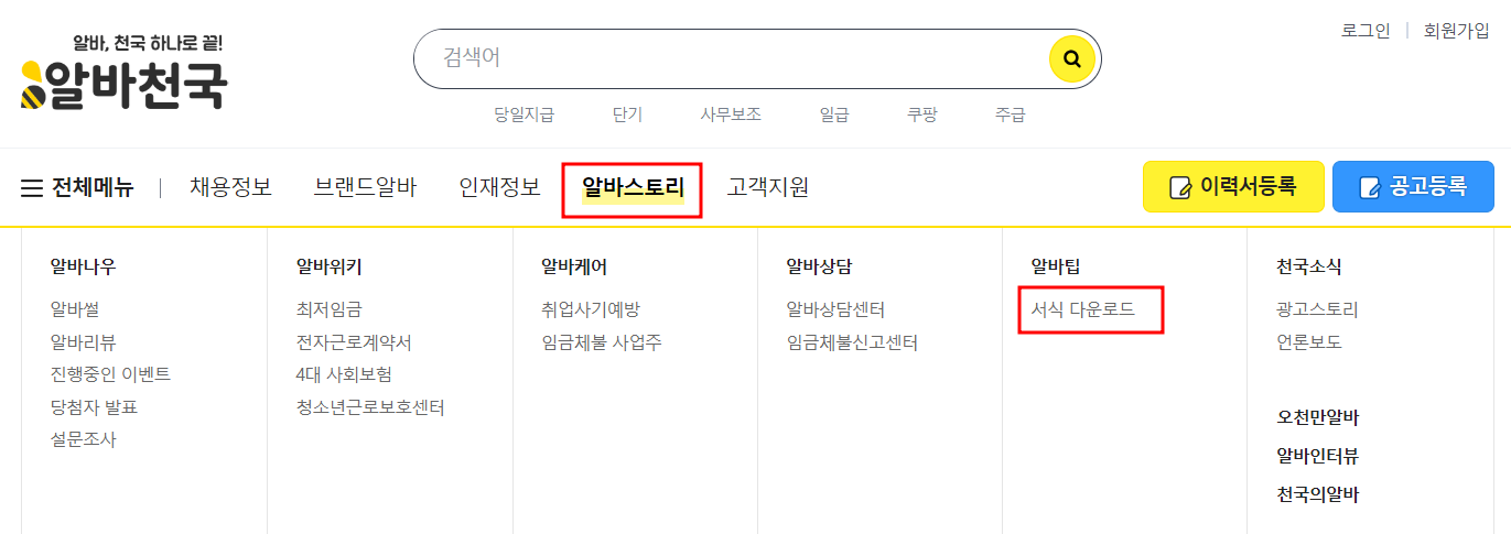 | 알바천국 | www.alba.co.kr | 알바스토리 - 알바팁 - 서식 다운로드 |