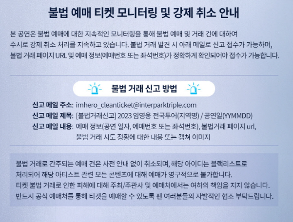 예매대기서비스로 원하는 공연/날짜/좌석을 선택해 놓으면, 해당 좌석이 취소되는 경우 고객님에게 알려드립니다. 티켓 비용 미입금 혹은 부정 예매로 인한 취소표가 발생하고 있습니다. 예매대기 신청해보시고 임영웅 콘서트 취켓팅에 도전해보세요!