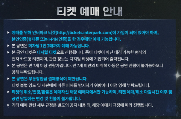 - 공연시간: 150분 - 예매가능시간: 공연 6시간 전까지