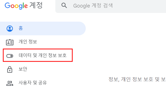 3. 데이터 및 개인정보 보호 메뉴을 클릭합니다.