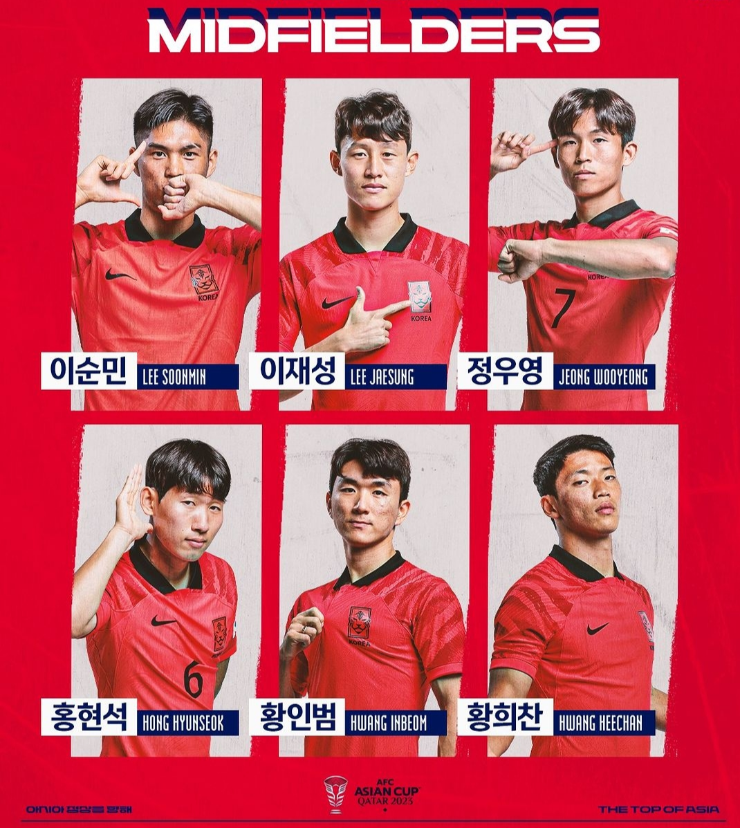 MF: 문선민, 박진섭(이상 전북현대), 박용우(알아인), 손흥민(토트넘), 양현준(셀틱), 이강인(파리생제르맹), 이순민(광주FC), 이재성(마인츠), 정우영(슈투트가르트), 황인범(즈베즈다), 황희찬(울버햄튼) 홍현석(KAA헨트)