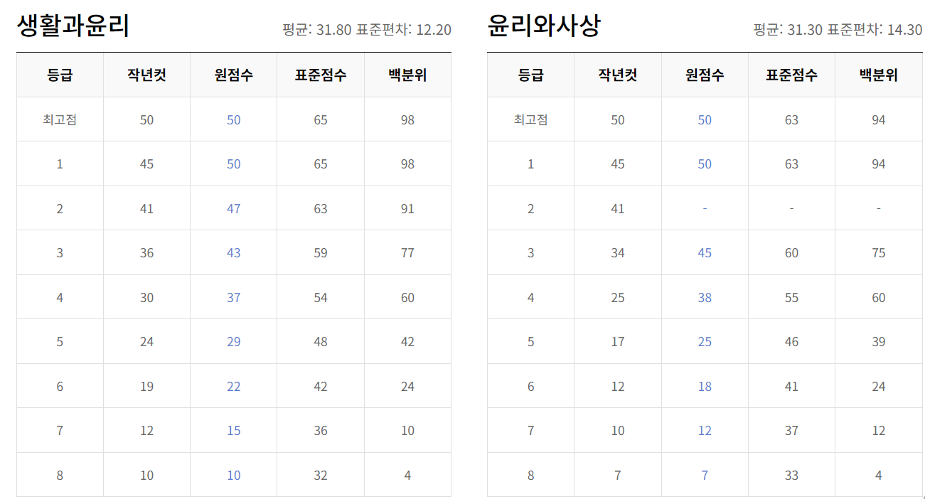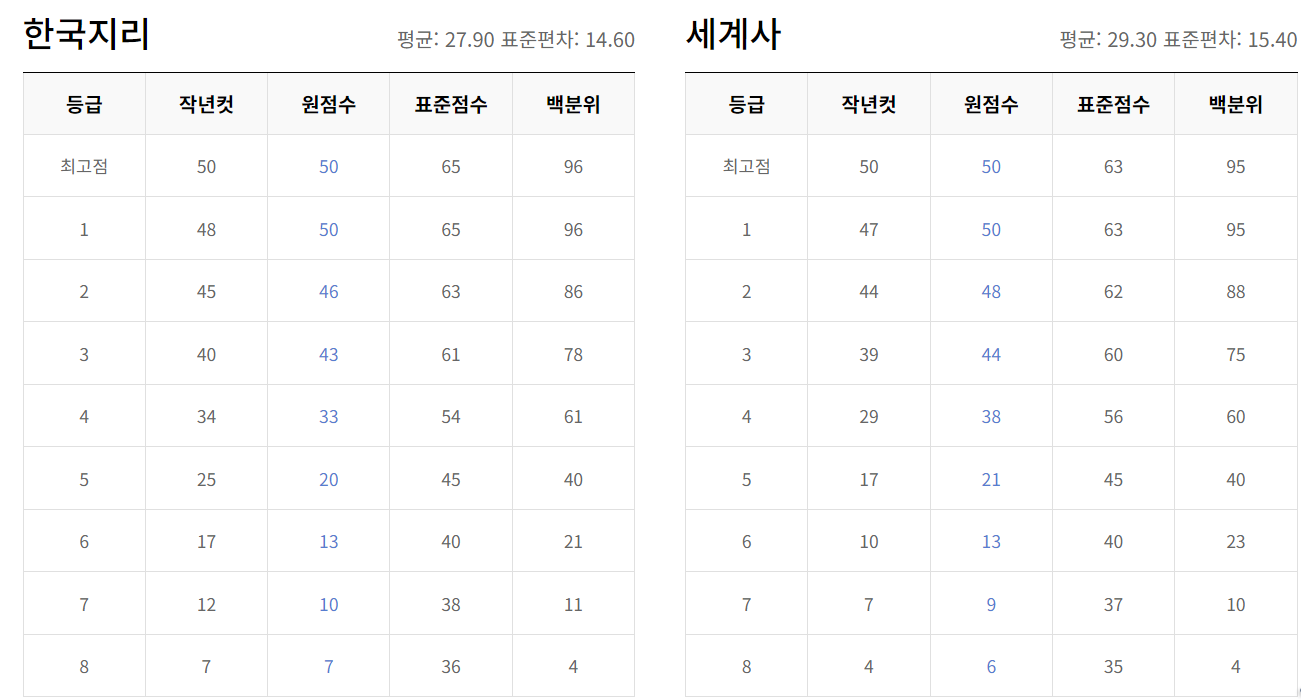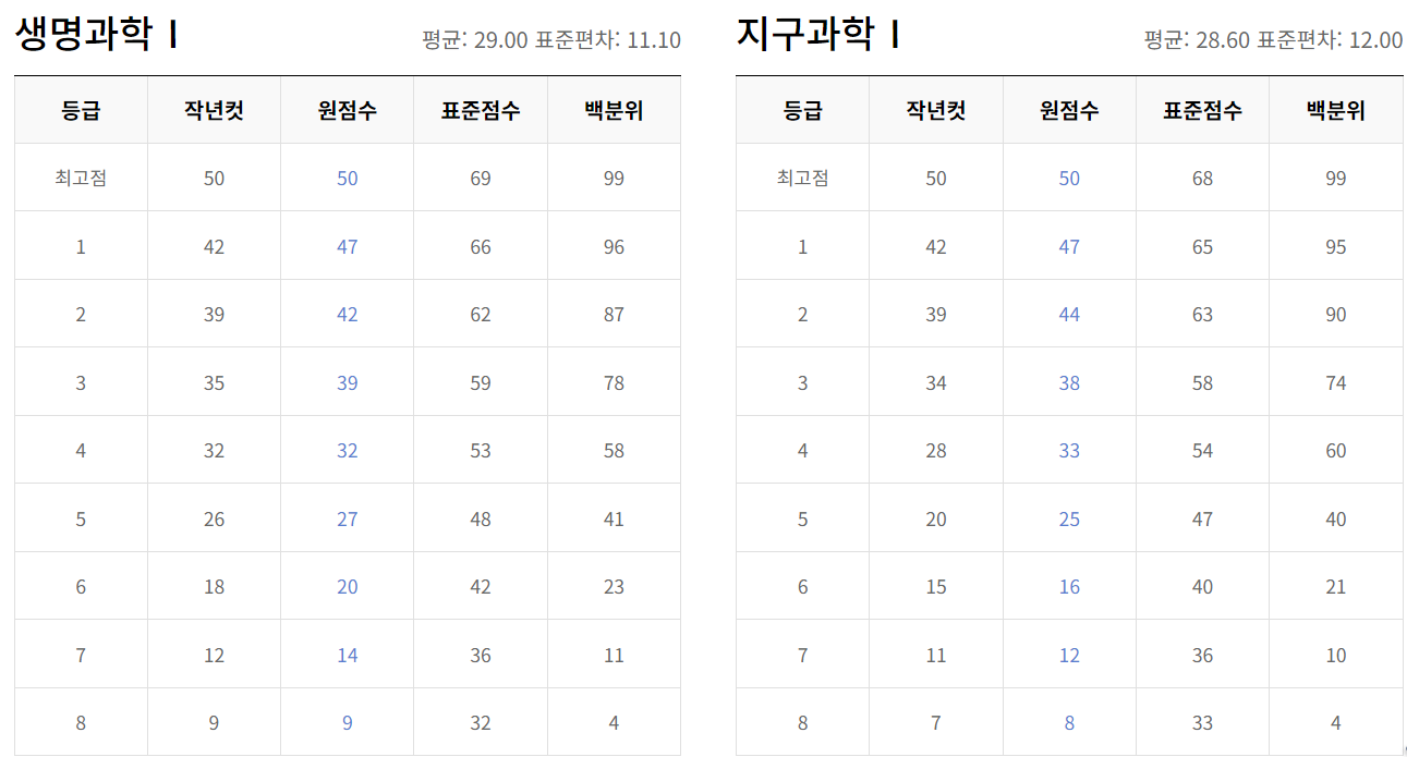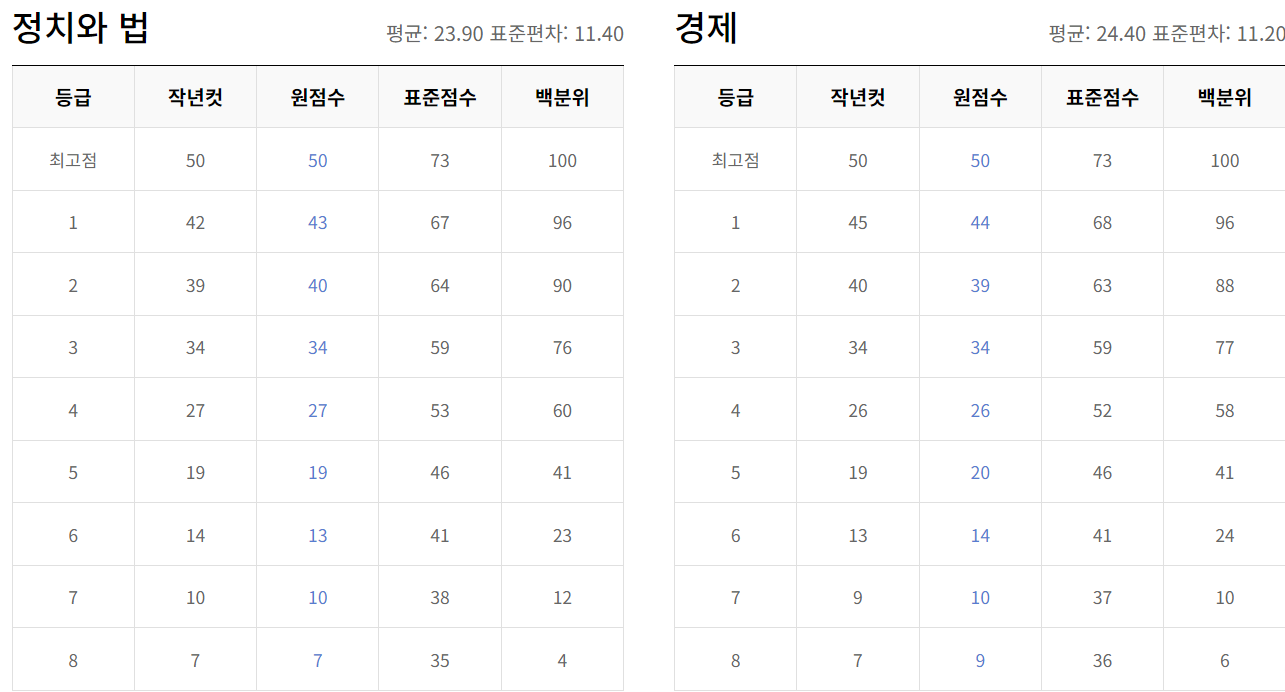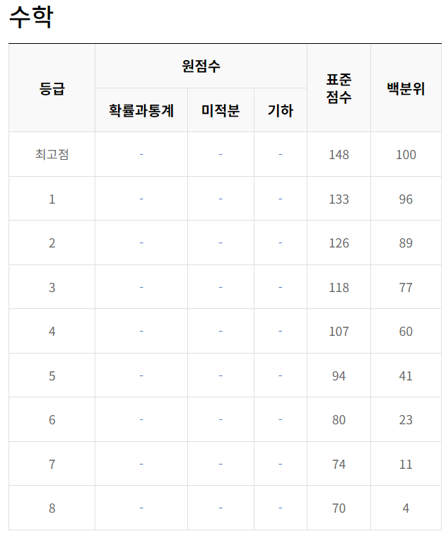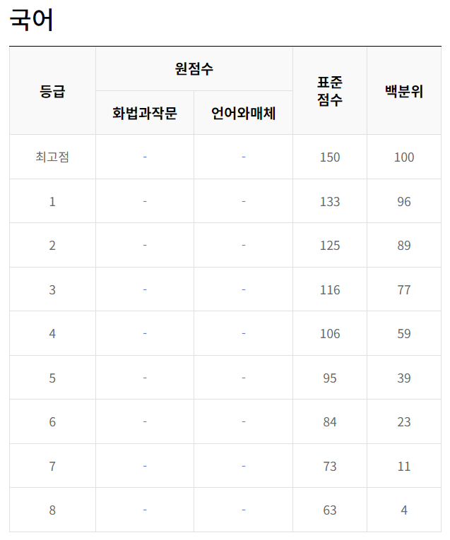 온라인 수능 정시 배치표