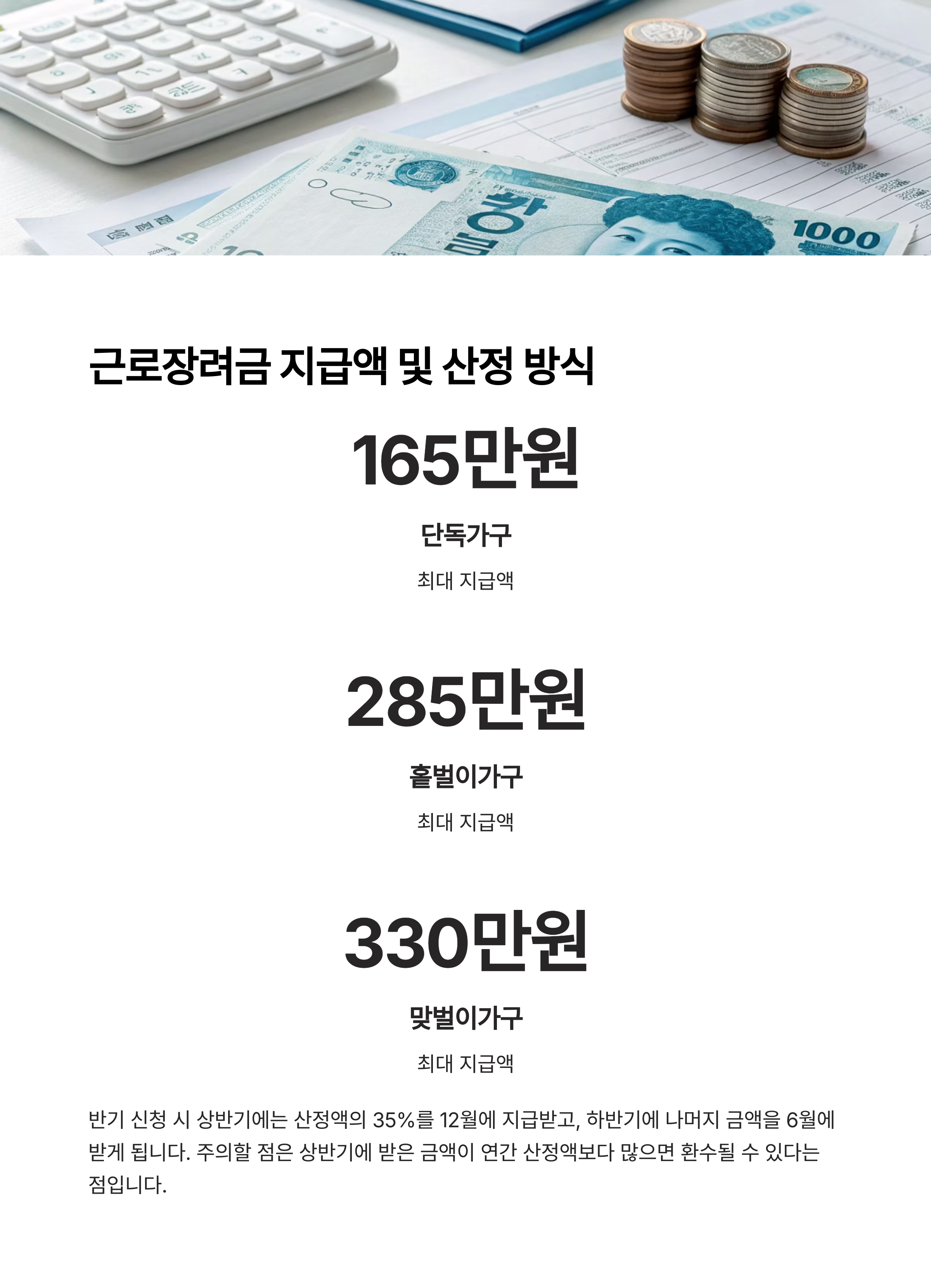 2025 근로장려금 지급액 및 산정 방식
