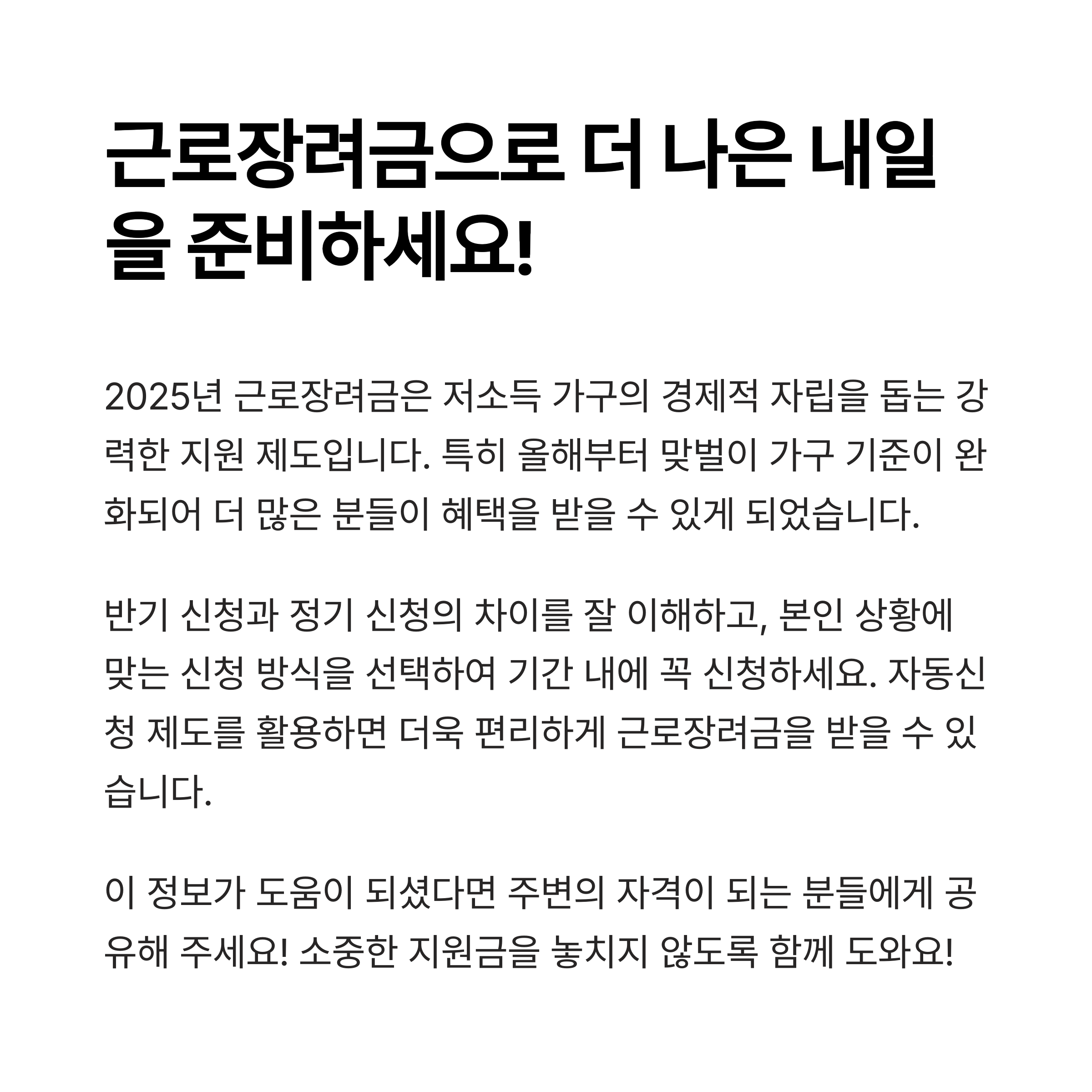 2025년부터 근로장려금에 중요한 변화가 적용되었습니다.