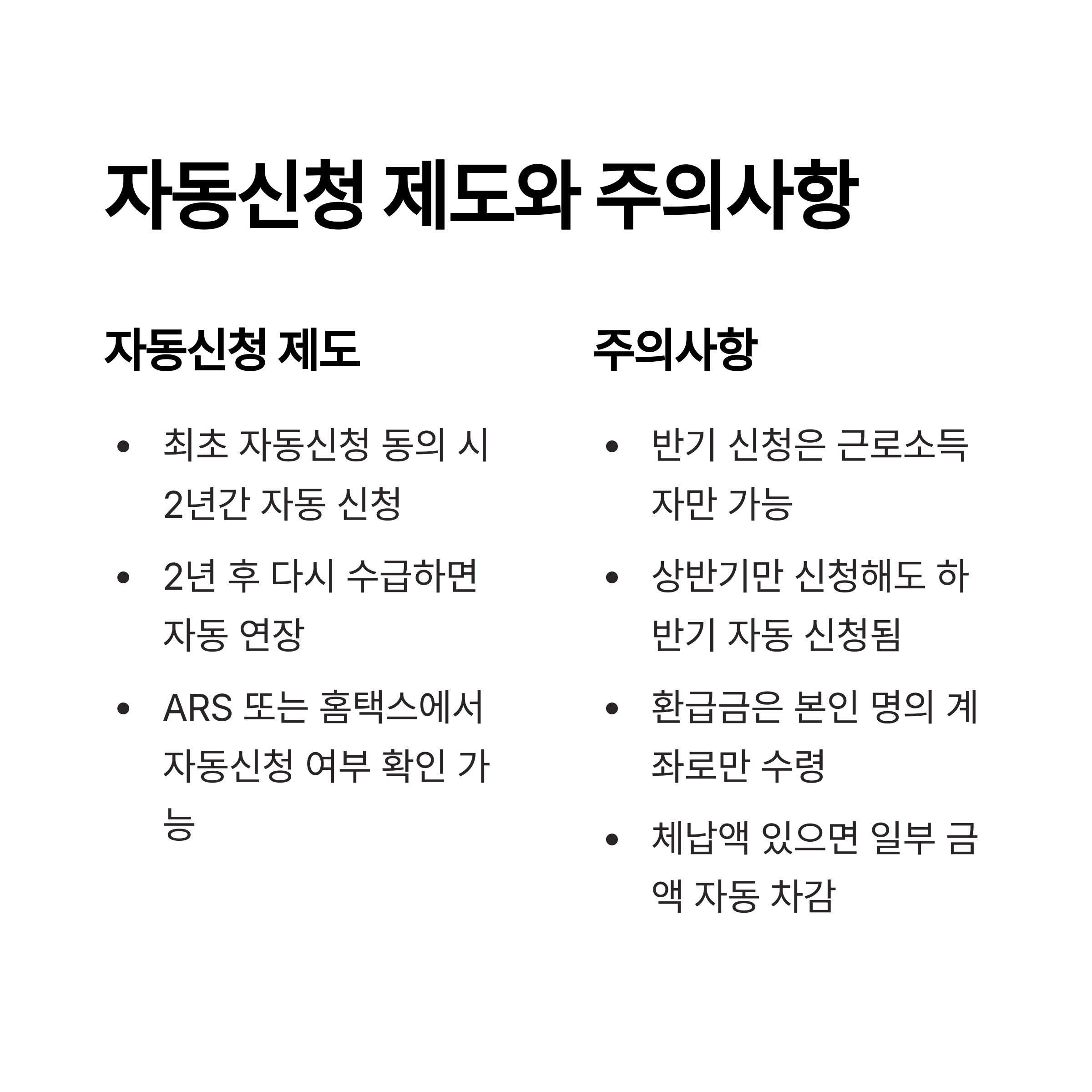 - ARS 또는 홈택스에서 자동신청 여부 확인 가능
